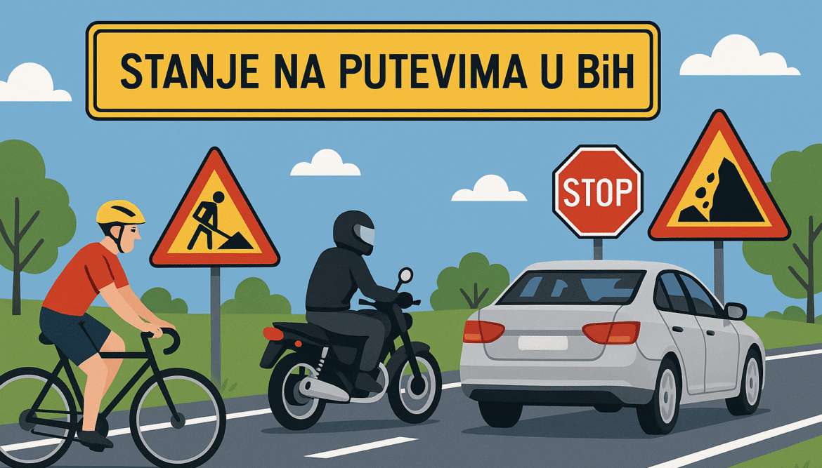 Jutros su putevi širom Bosne i Hercegovine prohodni, a vozači ne prijavljuju veće smetnje ili zastoje u saobraćaju. S obzirom na poboljšane vremenske uvjete, na cestama je uočen povećan broj motociklista, biciklista, korisnika električnih romobila i pješaka. Apelujemo na sve učesnike u saobraćaju da voze smireno, održavaju propisano odstojanje između vozila i izbjegavaju nagla kočenja, naročito kada je saobraćaj gušći.